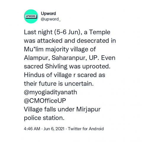 Hindu temple Vandalized, Shivling Destroyed in Muslim majority neighborhood.