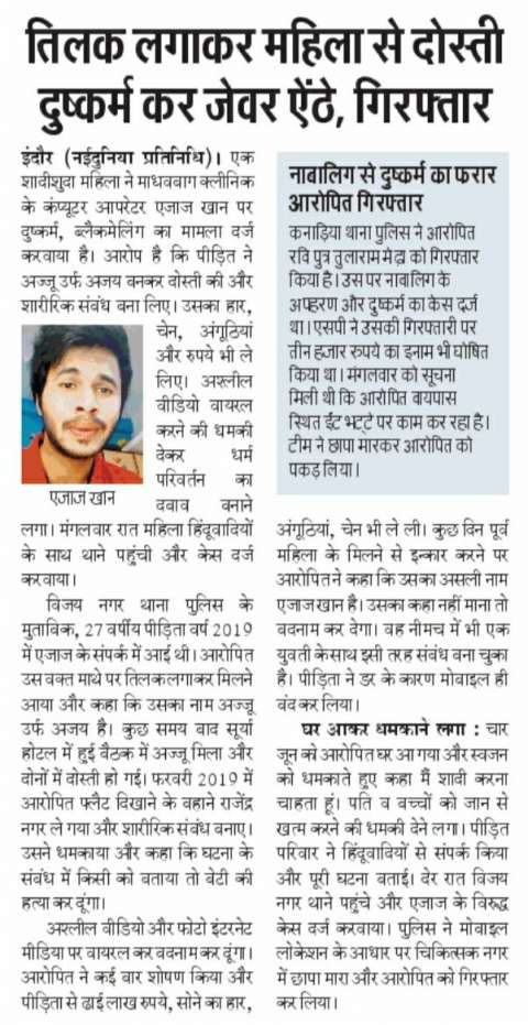 Abid Hawari Fakes Identity as inspector Aditya Pratap, Black Mails and Rapes Hindu woman.
