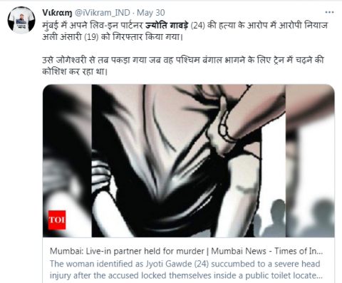 Niyaj Ali Brutally Killed Jyoti, they lived and worked together.