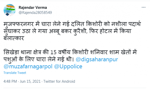 Abu Bakar Intoxicates, Rapes Hindu dalit girl.