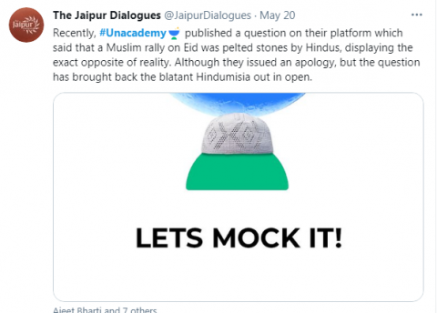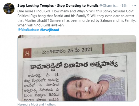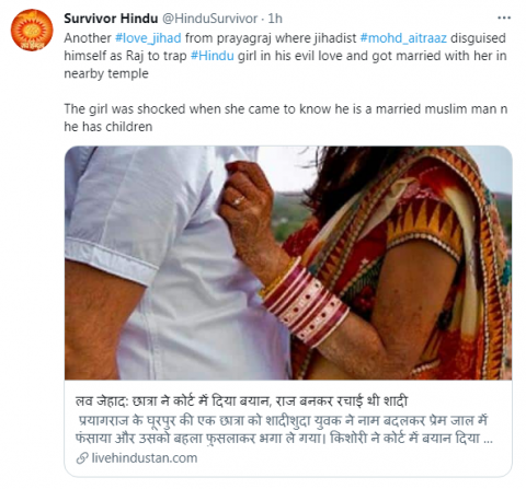 The term "Hinduphobia" is delegitimized in the article by claiming that such a term is used to justify hatred against other religions and further the Hindutva nationalist movement which strives to exclude other religions and promote inequality. In other words, any real accounts or fears of prejudice against Hindus are trivialized by the writer by forwarding the claim that the danger of Hindu extremism is much more worrying and is built on such cries of "victimhood" by Hindus.