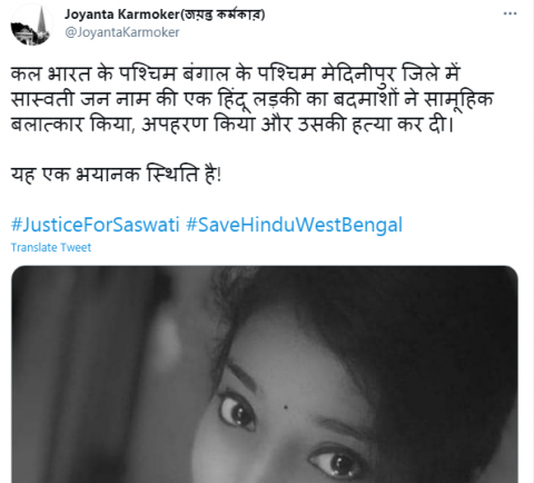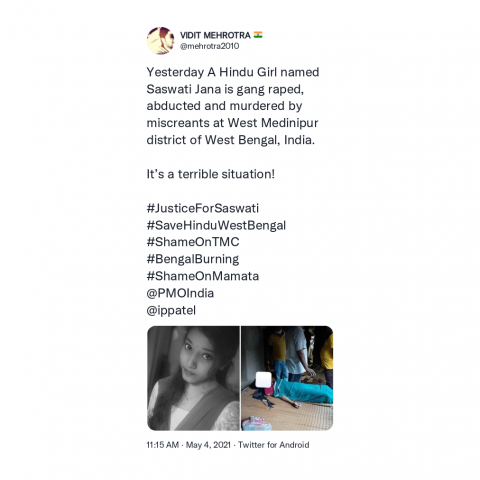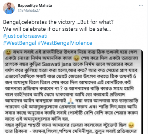 Saswati Jana Gang Raped and Murdered by TMC workers after Bengal elections.