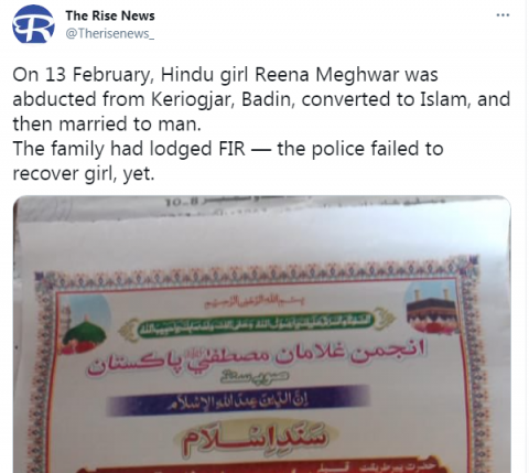 Hindu girl Reena Meghwar Abducted Forcibly Converted and married to muslim man.