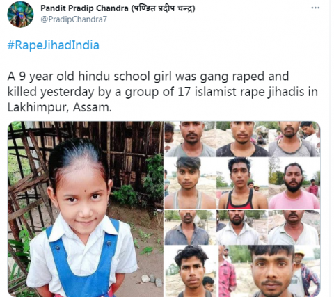 17 Muslim individuals Rape and Murder 9 year old Hindu minor girl.