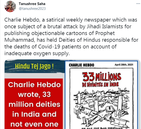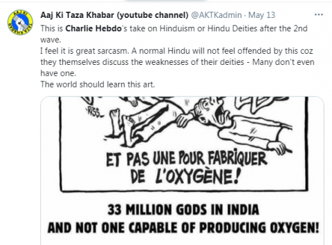 Charlie habdo publishes Hinduphobic cartoon, Mocking Hindu Gods.