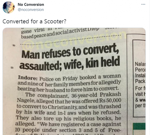 Muslim man Fakes Identity, Forces Conversion after marriage.