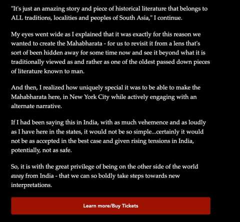 The material claimed that Mahabharata was NOT a text for Hinduism but rather comes in hundreds of regional versions, religious versions, and languages, and actually anyone from South Asian region can choose to feel that it is part of their history. It adds on, “It’s just an amazing story and piece of historical literature that belongs to ALL traditions, localities and peoples of South Asia”.