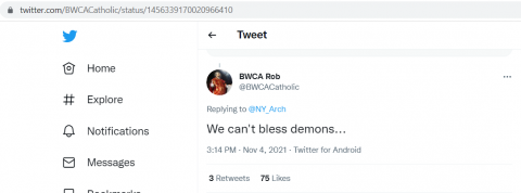 BWCA Rob, in response to The Archdiocese of New York’s Diwali greeting to Hindus, responds in a Tweet: “We can’t bless demons…”