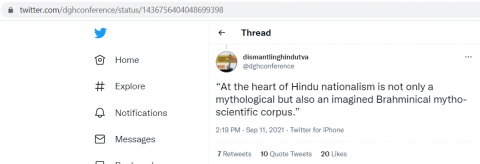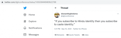 On Day 3, Session 1, Dheepa Sundaram, Assistant Professor, Hindu Studies, Critical Theory and Digital Religion at University of Denver, said: “So, what’s worse than being demonized, is being erased, in my view. And so, there is no space to trend an Adivasi hashtag. There is no space, for example, to trend when Durga Puja trends, #DurgaPuja, to trend #MahishasuraCasteOppression, which is a hashtag often promoted by Dalit groups during that time.”