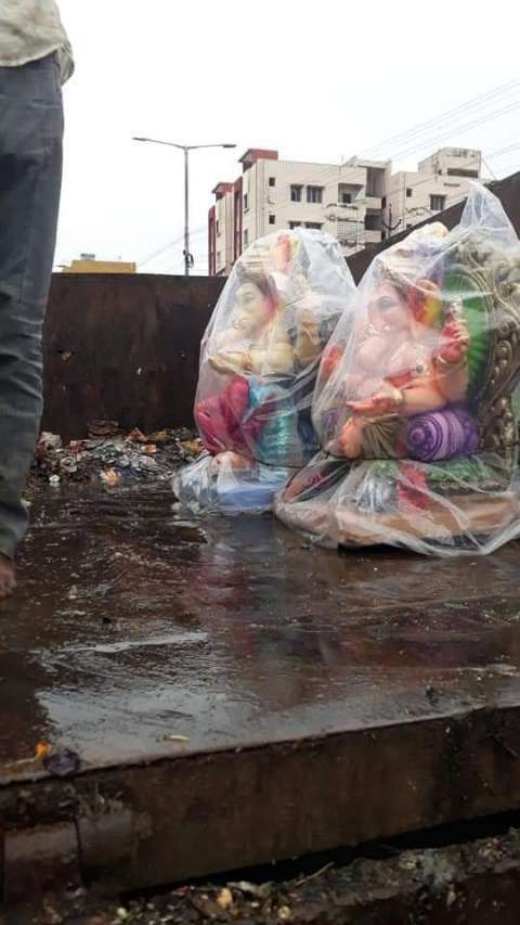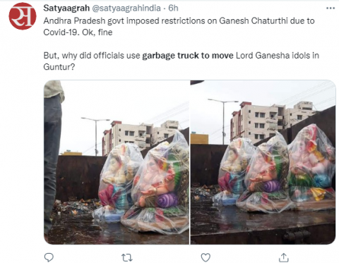 AP Government officials Demean Hindu sentiments by moving Sri Ganesha murtis in garbage truck.