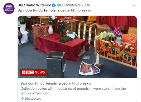Hindu temple Broken in, Vandalised and property Stolen for fifth time since May.