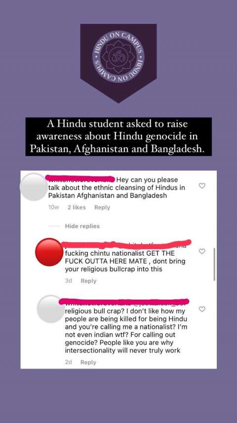 An Instagrammer abuses a Hindu student who requests to raise awareness about Hindu genocide in Pakistan, Bangladesh and Afghanistan.