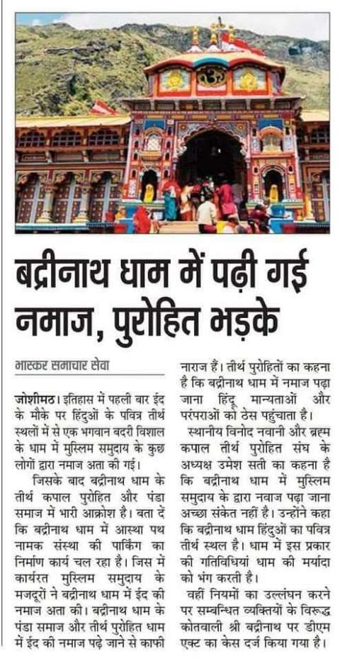 Muslims Encroach Badrinath Dham and offer namaz in temple on Eid-ul-Adha.