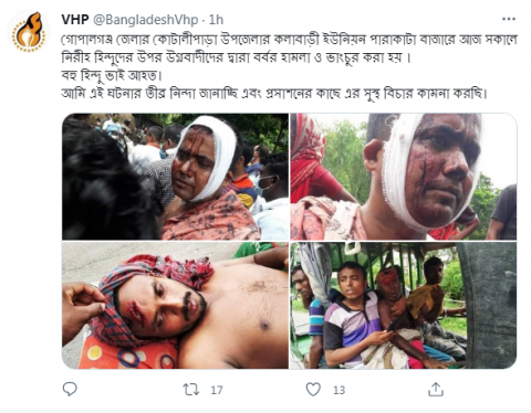 A mob of radical Islamists in Bangladesh attacked the Hindu community without provocation.The incident took place at Kalabari Union Parakata Bazar in Kotalipara in the Gopalganj district of Bangladesh.The Bangladesh Hindu Unity Council took to inform that the attack took place on the occasion of Eid-ul-Adha.
